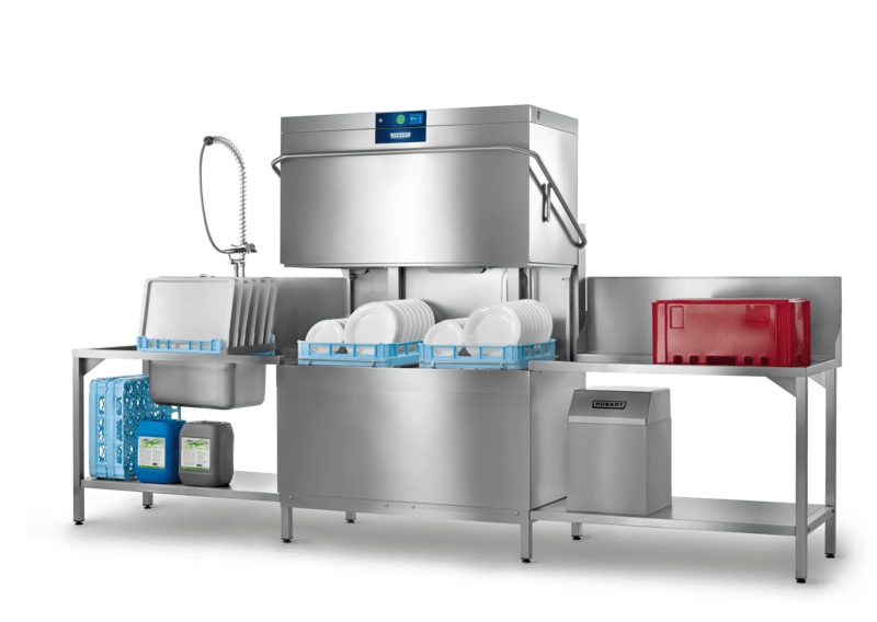 (Volitelně) Automatický zdvih krytu: Uživatelsky přívětivý a šetřící sílu: s přídavně volitelným zdvihem krytu HOBART můžete svoji průchozí myčku nádobí zavírat snadno stisknutím tlačítka. Po procesu mytí se kryt automaticky otevře
