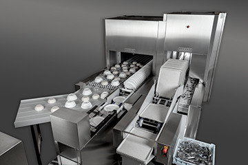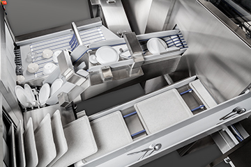 Skládají se z automatické oddělovací jednotky, pásové myčky nádobí FTNi na tácy a příbory, a extra široké pásové myčky nádobí FTNi se samostatnou dráhou pro mísy a talíře.