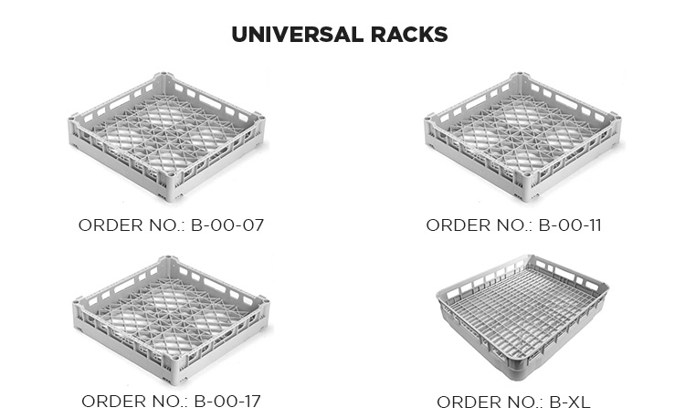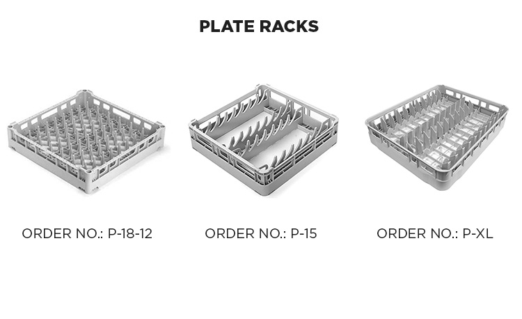 | P-XL | Koš na talíře 600 x 500 mm, pro 24 talířů s průměrem až 240 mm Ø nebo 22 velkých talířů (285 mm Ø), výška 11 cm |