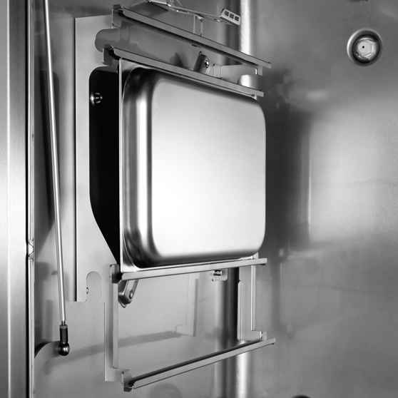 Zvyšte svoji kapacitu s našimi bočními vodicími kolejnicemi pro talíře a nádobí na maso. Na rozdíl od běžných modelů umyjete v rámci každého cyklu výrazně větší objem.