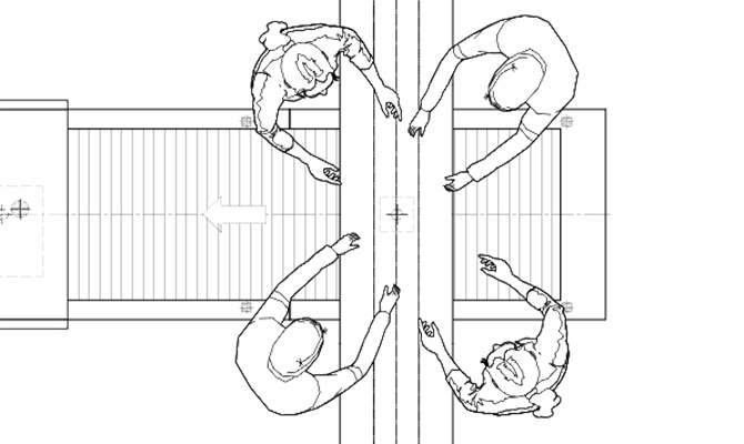 HOBART využívá u vstupu do pásových myček nádobí snížené prostory pro vkládání až do čtyř pracovních pozic. To výrazně zvyšuje kapacitu organizace mytí.