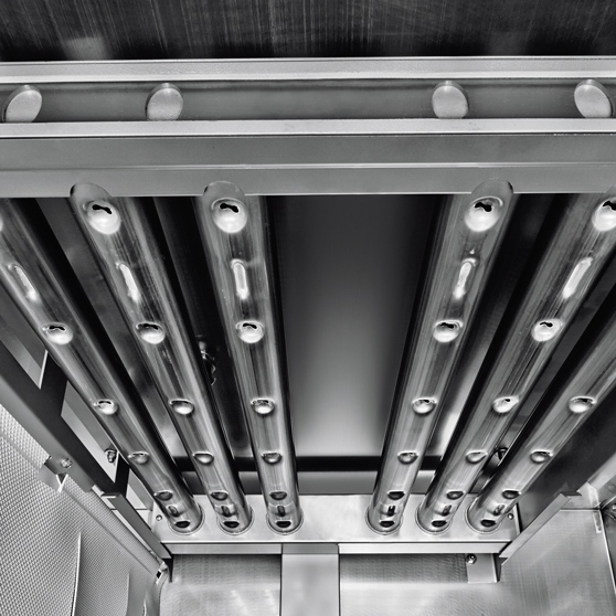 Při mytí je pro dokonalý výsledek zásadní rovnoměrné rozvádění mycí vody. HOBART vytvořil mycí trysky se speciálním tvarem, aby byla maximalizována jejich efektivita, aby na rozdíl od běžných systémů pokrývaly větší prostor přesnějším způsobem.