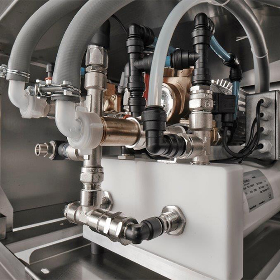 Spolehlivé, dokonalé a hygienické: Nepřetržité působení moderní membrány a filtrační technologie zajišťuje plně demineralizovanou vodu – pro soustavně hygienické a čistoskvoucí opláchnutí. Předem je zabráněno hygienickým rizikům, které hrozí při ručním leštění.